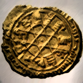 Il verso di una antica Corona d'oro risalente all'anno 240 d.F. e appartenente alle prime serie emesse dalla Zecca di Greyhaven.