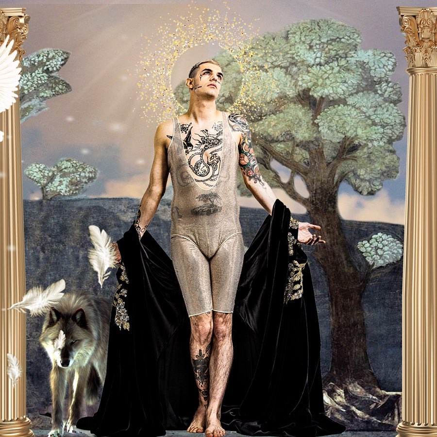 Il personaggio ritratto nel dipinto è il rapper e cantante italiano Lauro de Marinis, più noto come Achille Lauro (Verona, 1990).