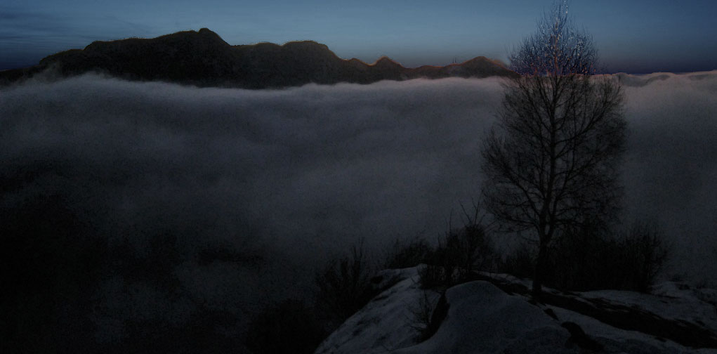 Immagine del [[Vallone della Tranquillità]], scena notturna con fitta nebbia.Immagine del Vallone della Tranquillità, scena notturna con fitta nebbia.